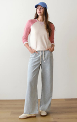 A classic silhouette meets a super soft feel and a spring-ready colorway. This buttery raglan features baseball sleeves, contrast collar and cuffs, and an easy fit, all finished in a comfy blend of cotton and modal. Pair with relaxed fit denim and sneakers for a chic and sporty look!