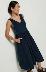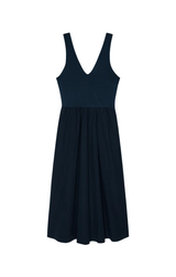 Minimal, clean, chic. You'll style this one all summer long. Whether pairing with gold jewelry and strappy heels or slides and a denim jacket, you'll be feeling all the cool and comfy vibes in this tank dress. Featuring a v-neckline, fitted bodice, contrast skirt, and side seam pockets.
