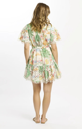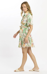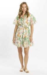 We're in love with this flirty mini! The Alva Dress features a classic collared neckline, short sleeves, mini length, a self-tie belt to flatter the waist, and intricate eyelet detailing throughout the fabric. Style with espadrille wedges and gold jewelry for a summer night out!