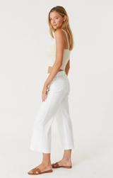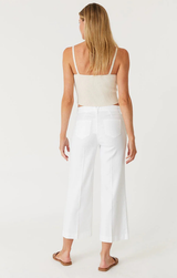 The perfect summer pant has arrived. Crafted from a luxurious blend of stretch linen and Tencel™, these will be your everyday go-to. Featuring a mid rise waist, cropped ankle, wide leg and a bright white hue. Style with everything from blouses and heels to tanks and sandals.