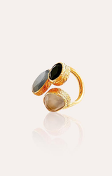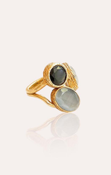 A true statement piece, this gold-plated ring showcases Cat's Eye quartz that catches the light with every movement. Its bold, sculptural silhouette and adjustable fit make it the perfect accessory for any outfit.