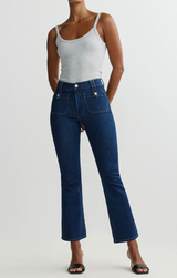 Introducing the Bridget Boot in Deep Sapphire—the denim that flatters every curve. This high-rise, cropped boot cut style cinches at the waist while hugging your silhouette in all the right places. Crafted in a rich, versatile deep sapphire shade, it's the perfect foundation for endless outfit combinations. Whether dressed up or down, this best-selling silhouette delivers comfort and confidence with every wear.