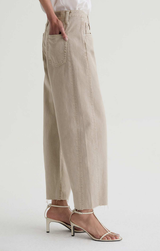 The Hattie Crop is a universally flattering favorite. Featuring an ultra-high waist and a curved shape at the legs, complete raw hems that land above the ankle. All constructed in 100% Italian cotton with a comfortable stretch, these versatile bottoms pair with tees, blouses, and tank tops alike!