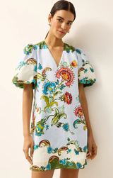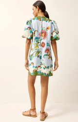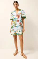 The Kiki Dress combines effortless summer style with charming details. Crafted from clean linens, this mini length dress features delicately puffed sleeves and a vibrant seasonal print that captures the essence of warm-weather dressing. Perfect for casual outings, garden parties, or leisurely days when comfort meets style.