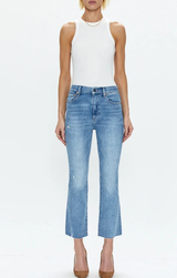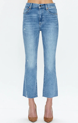 The bootcut jeans you’ll reach for over and over, featuring a high-rise waist with a body-skimming fit from hip to knee before gently flaring at the calf. The cropped ankle bootcut creates a flattering silhouette made from stretchy fabric that offers comfort and flexibility while holding its shape.