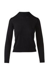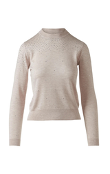 The perfect combination of cashmere, silk, and a little bit of glamour. This versatile top features a classic crew neckline, slightly relaxed fit, long sleeves, and scattered rhinestone detailing around the neckline and shoulders. Pair with your favorite denim and a cardi for a winter-ready look.