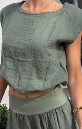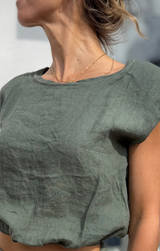 - Linen Cropped Blouson Top