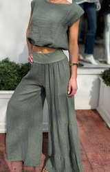 These versatile bottoms are perfect for summer and will transition your closet into the next season with ease! Featuring a flowy wide leg design, flattering wide waistband that can be folded over, and a classic palazzo-style silhouette, all finished in Italian linen. Style over your favorite swimsuit as coverup beach pants or pair with the Linen Cropped Blouson Top for a perfect match.