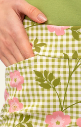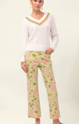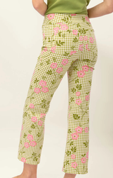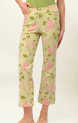 A classic kick flare pant with a spring forward print. Featuring a pull-on style, which means no zipper ripples or button bulges, side pockets, cropped ankles and a sleek fit. Style with Spartina's Kendra Racerback tank and slides.