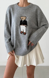 The Parker Sweater is the picture of polished perfection! Featuring a classic crew neckline, a relaxed fit that suits most everyone, and long sleeves, all finished off with an adorable embroidered front motif of a teddy bear in his own fashion-forward ensemble. Style with a mini skirt and boots for a cheeky winter look, or simply pair with your favorite jeans for your next holiday party!