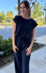 Meet your new spring and summer go-to! This easy top features a relaxed, laid-back fit, breezy dolman-style short sleeves, a breathable feel, and a classic crew neckline to keeps things simple and timeless. Pair with the Wide Leg Pant with Small Waistband in Galaxy or your favorite denim shorts and you're ready for whatever the season brings.