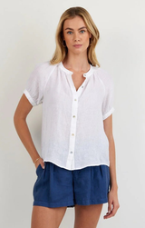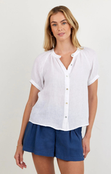 Effortless style meets comfort in this short sleeve raglan shirt. Crafted from lightweight linen, it features a relaxed fit that moves with you, subtle puff sleeve detailing for a touch of charm, and a classic button-up front. Perfect for warm days when you want to look put-together without trying too hard.
