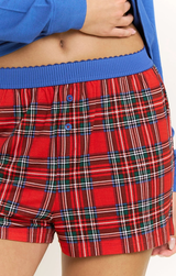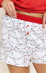 Tis the season! It's time for cozy pjs by the fire while you sip on some hot cocoa. Featuring a long sleeve crewneck top paired with a boxer short in a lightweight, french Terry fabric. Wrap this set as a cute gift for someone special or a comfy gift for yourself.
