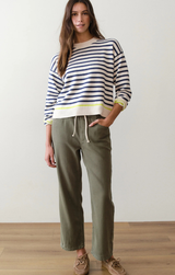 Throw on this playful crew neck and let the neon trim do the talking. Classic navy stripes meet modern edge in an easy-fitting silhouette that's anything but boring. Simple never looked so fun.
