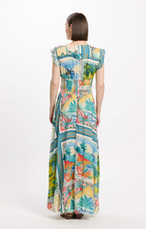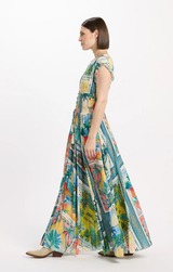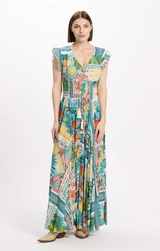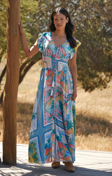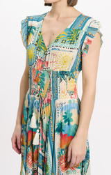 Eye-catching Taly is the perfect blend of pattern and comfort. Featuring short ruffled sleeves, a smocked waist panel to create a flattering fit, classic V neckline, and maxi length, all finished in a unique pattern that screams summer. Style over a swimsuit as a beach dress or dress it up with gold jewelry and heels!
