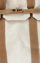 Inspired by the popular "Boatkin" trend, this accessory essential is ready for summer! Featuring a generous size that allows it to be worn as a daily tote, shopper, beach bag, or overnighter, contrast top handles, gold-toned hardware, and an organic cotton canvas construction. Pair with your favorite sunglasses, a breezy maxi, and gold jewelry!