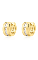 The Pave Stripe Monaco Huggies merge the classic closeness of a mini-huggie with an elegant twist of sparkle. A slim hoop hugs the lobe seamlessly, while a centered channel of pave stones adds subtle shimmer and sophistication.