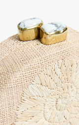 Celebrate the essence of summer with this handwoven straw bag, designed for sun soaked days. Hand embroidered with a charming shell motif and finished with a stone closure, it pairs craftsmanship with effortless coastal style. Complete with a gold metal chain shoulder strap, soft cotton lining. Perfect for vacations or everyday sunny escapades.