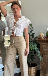 The Rayne Pant is a wardrobe essential that will stay in your rotation year after year. Featuring front and back slit pockets for a modern twist on the classic tailored pant, a wide leg design, hidden hook and eye zip closure, and a structured silhouette, all finished in a durable cotton and tencel blend. Pair with your favorite button down for classic workwear, or dress it down with a chunky knit or lightweight tee.