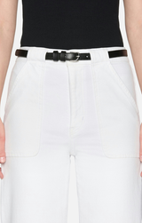 Comfy but chic in these classic modern wide leg denim jeans. Featuring utility-inspired pockets, this ultra high-rise jean  is meant for all day wear. The wide legs embody workwear  vibes to date night looks. Style with a fitted tank and heels or a button up blouse and loafers.