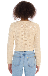 A cute transitional sweater that will take you into the new season. Featuring subtle sparkle with sequin and beading throughout and a cotton crochet fabrication. The pearl buttons add a feminine touch. Style with the matching Beaded Dawn skirt and heels for a cute work vibe.