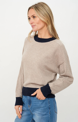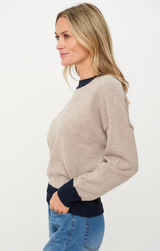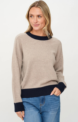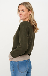 A Six Fifty favorite lounge top to wear all fall and winter long. Featuring a classic crew neck, long sleeves, color block hem and a relaxed fit. Style with dark wash denim and sneakers.