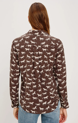 The equestrian vibes have taken over fall and we are here for it. The Kate is an ultra-soft, washed silk button-down that can be styled up or down with your everyday looks. Featuring a front full button down style, long sleeves, collared neck and loose fit. Style with light wash denim and boots for a chic fall look.
