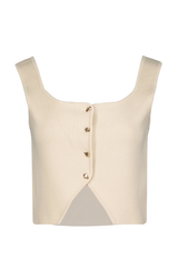 An elevated tank to style up now or incorporate in your fall rotation. Featuring an ultra soft knit, thick straps, angled cut away hem, gold button front and a cropped length. Style with trousers and loafers for an elevated day to night look.