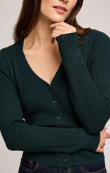 Effortless texture and style. The Mia V Neck Pullover is crafted from a soft yard in a delicate stitch pattern, offering both comfort and style. Featuring a flattering V-neckline and a functional button-front closure, this slim-fit top pairs beautifully with high-waisted jean, skirts or tailored trousers!