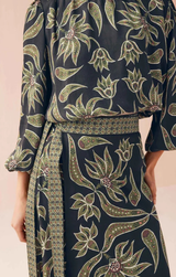 We love a good wrap skirt for any season of the year. This maxi skirt is perfect for the cooler fall season with its darker floral pattern. Featuring a tie waist, maxi length, and flowy fit. Style with the matching blouse and a leather jacket and boots.