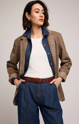 Meet the Sapphira. A classic blazer style jacket made of a soft brushed fabric in a chocolate glen check plaid. The roomy fit is perfect to layer up over a sweater with dark wash denim jeans and boots. This will be an everyday staple in your fall jacket rotation.