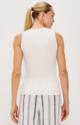 The vest of the season has arrived. Add into your late summer looks and transition into fall. Featuring a v neckline, ribbed luxe blend, full button design and a soft ecru color. Style with the new Rails Alessa skirt and gold hoops for a chic and polished going out vibe.