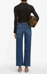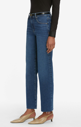 A staple super stretch denim that will take you right into the new season. Featuring a true mid-rise, ankle-length inseam, frayed raw hem and slim wide leg. Style with anything from a chunky knit sweater to a fitted bodysuit.