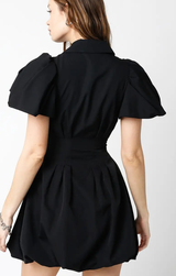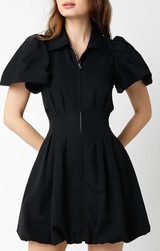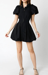The Ine Puff Sleeve Dress reimagines a timeless classic with a modern twist. This mini dress features dramatic puff sleeves that add personality and movement, paired with a front zipper for easy styling. The structured bodice creates a flattering silhouette that flows into a flared skirt, giving you that perfect balance of polished and playful. Whether you're dressing up for a night out or elevating your everyday look, this dress proves the little black dress never goes out of style, it just gets a glow-up.