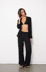 This breezy button down is everything you need for your next warm-weather outing! Featuring a functional button-front closure, long sleeves with buttoned cuffs, a classic collared neckline, and a lightweight feel, all finished in a timeless black colorway. Pair with the Smocked Pant in Black for a chic set or simply style with denim shorts!