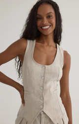 - Scoop Neck Vest in Linen Sand