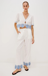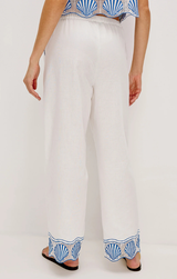 The Tildi Pant delivers the ultimate summer vibe. Featuring luxe linen fabric, a relaxed fit, and a comfortable drawstring closure, finished with a charming scalloped hem with delicate seashell embroidery. Style with the Venice Top for a summer set that turns heads, or simply top with a clean cut tank.