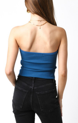 A chic and polished strapless tube top to dress up or down this summer. Featuring a flattering sweetheart neckline, ribbed fabric and fitted body. Style with denim shorts and sandals.
