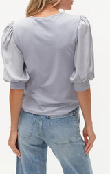 The Solara Top is designed to effortlessly elevate your casual style. Featuring a classic crew neckline, a lightweight feel, and a relaxed fit, all finished with feminine puffed elbow-length sleeves to add that polished touch. Perfect for layering or wearing solo, Solara pairs perfectly with wide leg denim or a blazer!