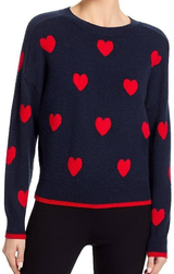 This cozy sweater will have everyone asking to be your Valentine. Featuring a classic crew neckline, long sleeves, a butter-soft feel, contrast detailing at the hems and cuffs, and sweet graphic knitted heart motifs throughout. Pair with wide leg denim and a red handbag for an outfit sure to steal hearts.