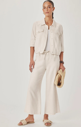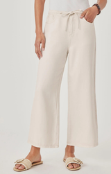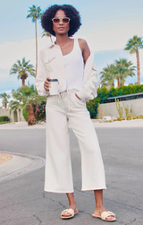 Kick back in style with our Lounge Denim Crop Pant, the perfect blend of comfort and cool. Crafted in a soft moonstone hue, this laid-back essential features a relaxed wide-leg silhouette that moves with you, paired with an adjustable drawstring waist for the perfect fit. The cropped ankle keeps things modern and effortless. Whether you're lounging at home or running errands, this versatile piece is your new go-to for casual vibes.