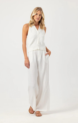 An effortlessly chic summer vest made from lux cotton boucle yarn. Featuring a button up front, v neck, ribbed hem and a slightly cropped fit. Style with the Mercer pants and some gold jewelry for a minimal yet styled look.