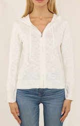 A comfy and classic zip up hoodie for your lightweight layers. Featuring a zipper front, long sleeves, raglan sleeve, hood and a soft and breathable cotton linen blend. Style over a fitted tank and denim shorts.