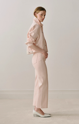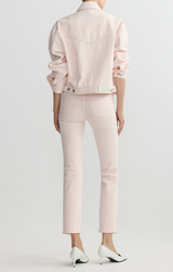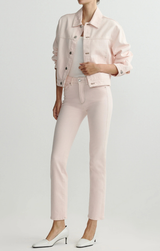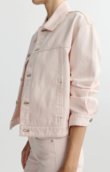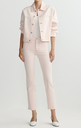 Your go to spring jacket has arrived! The Jodie features that classic oversize style, collared neck, boxy fit, and a soft, blush pink denim. Style over a fitted tank and Mara Straight Instasculpt denim.