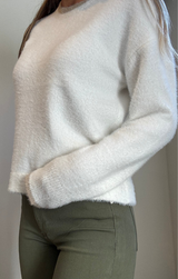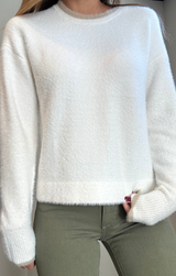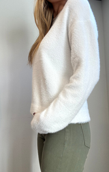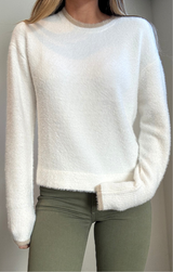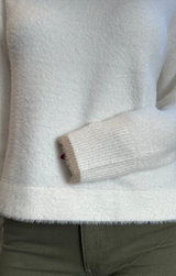The Heidi Crop Crew is crafted in a super soft knit with a clean ivory base and subtle beige detailing along the neckline and sleeves. Designed with a classic crew neckline and a slightly cropped silhouette, its an easy, cozy piece that pairs effortlessly with anything. Pair with the matching Heidi Striped Cardigan for a matching look!