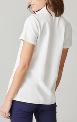 An easy everyday top created in a Peruvian Cotton blend knit. Featuring short sleeves, half zip neck, relaxed fit and a bright white. Style with denim and sneakers for a polished and clean on the go look.