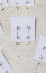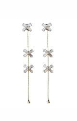 A sleek addition to your holiday looks. Featuring diamond bow detail, lightweight duster gold link chain and a comfortable post backing.