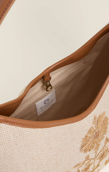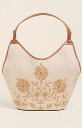 A cute tote to transition you into the spring and summer seasons. Crafted from a papyrus embroidered woven cotton jute it features a secure lobster clasp and an interior zip pocket.