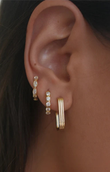 The Maeli Huggies combine durability with a luxurious shine. Adorned with sparkling cubic zirconia stones, these hypoallergenic earrings are gentle and will elevate any outfit!