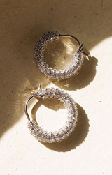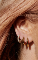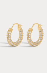 Bold, sparkling and effortlessly beautiful, the Pave Amalfi Huggies are statement hoops designed to turn heads. The chunky hoop is fully encrusted with pave stones, catching the light from every angle. Perfect for layering with smaller hoops or wearing alone.